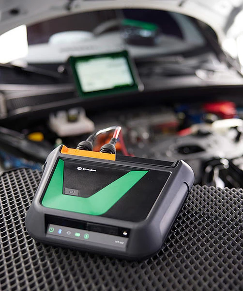 Innovativ, flexibel, kabellos: das ist der MT-HV, das neue Messtechnikmodul für den mega macs X. Konzipiert für die Arbeit an Elektro-, Hybrid- aber auch Niedervoltfahrzeugen fügt es sich nahtlos in Ihren Werkstattalltag ein und erweitert Ihren mega macs X um eine komfortable Messtechnik für Hoch- und Niedervoltmessungen: