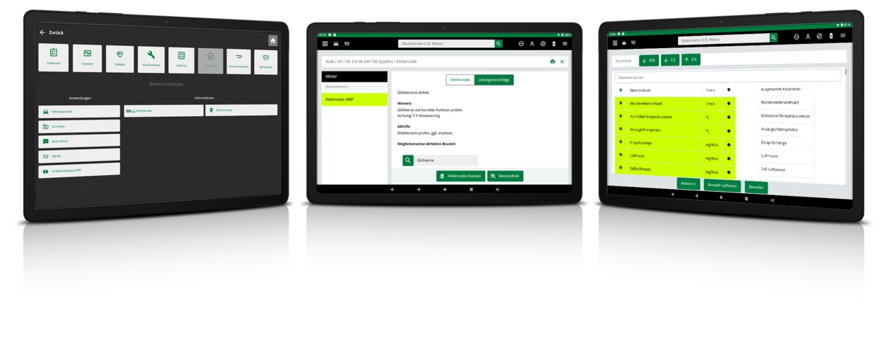 Fehlercodebasierte Online-Lösungsvorschläge: Nach Auslese der Fehlercodes hat der Anwender sofort Zugriff auf eine umfangreiche Wissensdatenbank. Dort werden die spezifischen Fehlercodes des Fahrzeugs automatisch abgeglichen, und die Werkstatt erhält hilfreiche Unterstützung und/oder direkt gezielte Lösungsvorschläge. Das macht die Diagnose einfacher und effizienter.